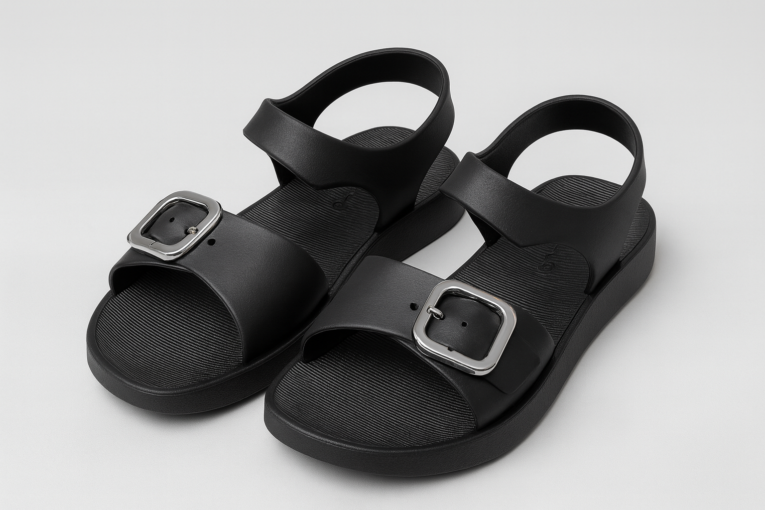 Step confidently into any occasion with the Lacleo Urban Buckle Sandal. Tailored for both comfort and style, this sandal features a wide front strap with an eye-catching metallic buckle, complemented by a supportive ankle band for a secure fit. The cushioned, contoured footbed offers soft support throughout the day, while the lightweight sole ensures easy movement from morning to night. This modern design is perfect for city strolls, casual outings, or everyday errands—blending statement style with practical comfort and durability